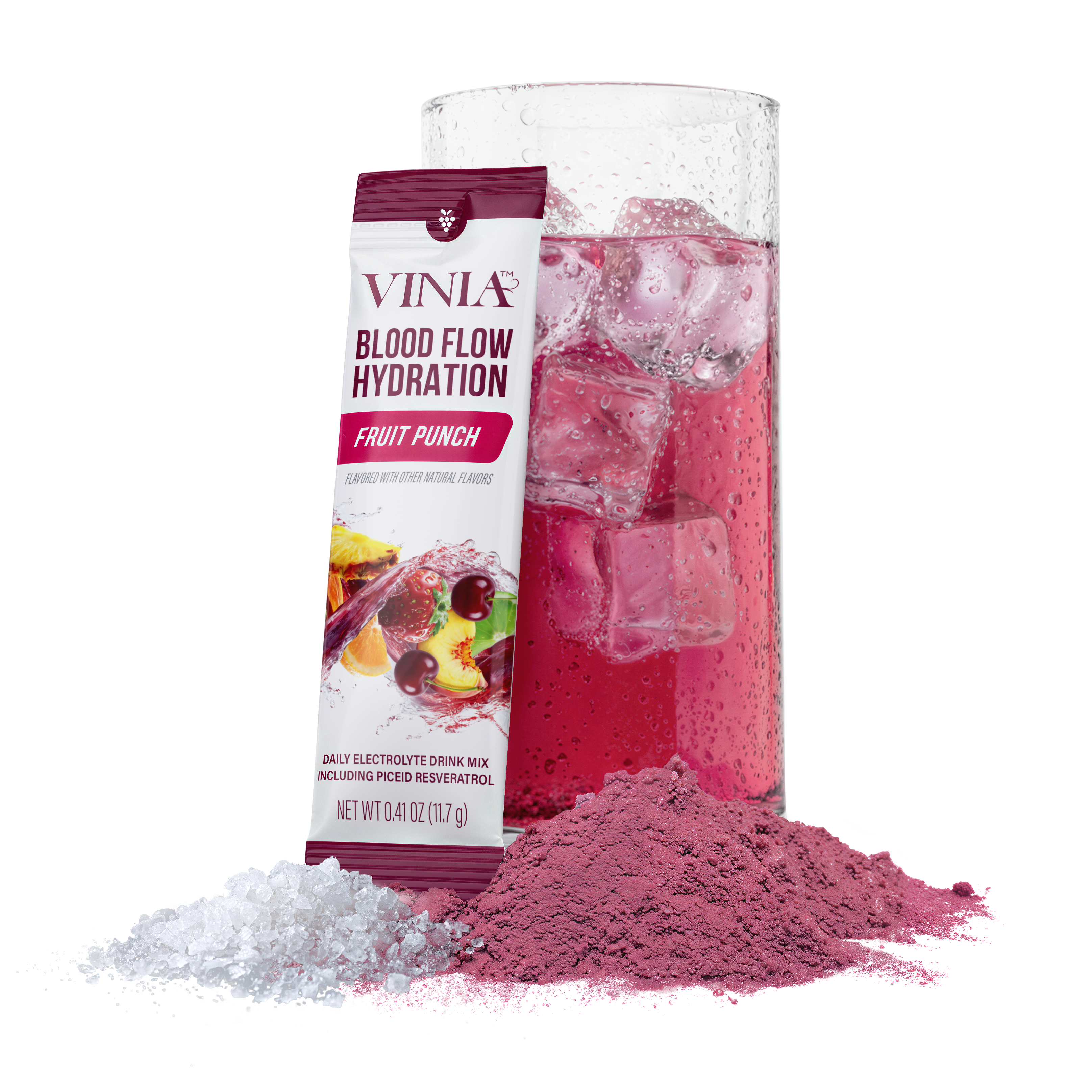 We pair our premium electrolyte blend with VINIA’s red grape powder, clinically proven to increase arterial dilation, improving blood flow.*