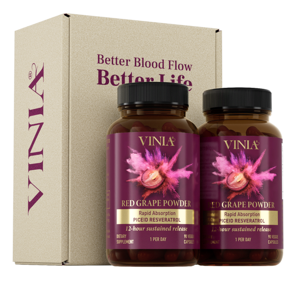 Meet VINIA, the only Resveratrol that includes the King of Polyphenols, Piceid Resveratrol, which is key in promoting artery dilation, supporting heart health and blood flow. One serving of VINIA contains the equivalent amount of Piceid Resveratrol found in 1,000 red grapes or 1 full bottle of red wine.