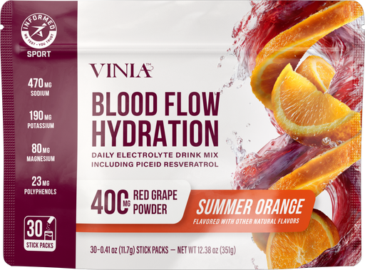 Meet the red grape superfood powered by Piceid Resveratrol, the King of Polyphenols. VINIA has been clinically shown to increase arterial dilation, supporting heart health and healthy blood flow.* Each serving delivers the equivalent amount of Piceid Resveratrol found in 1,000 red grapes or a full bottle of red wine, minus the sugars and alcohol.