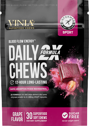 Meet the red grape superfood powered by Piceid Resveratrol, the King of Polyphenols. VINIA has been clinically shown to increase arterial dilation, supporting heart health and healthy blood flow.* Each serving delivers the equivalent amount of Piceid Resveratrol found in 1,000 red grapes or a full bottle of red wine, minus the sugars and alcohol.