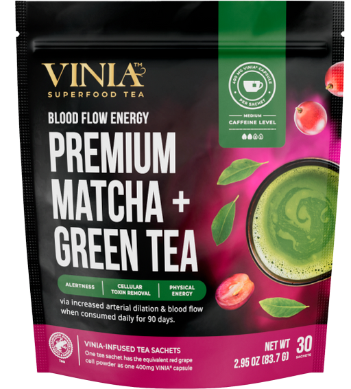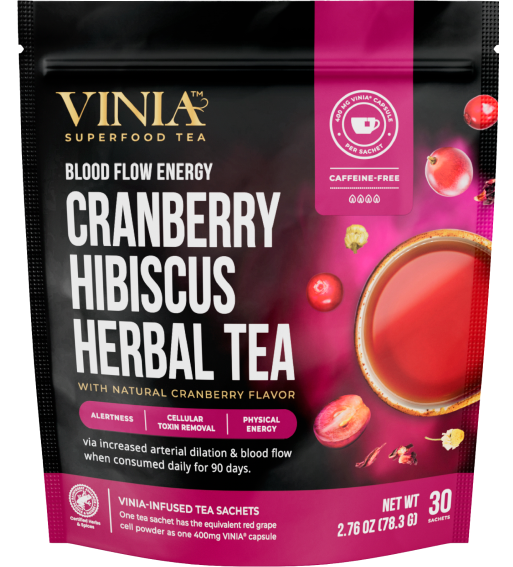 The primary ingredient in VINIA® is red grape cells in powder form. As a result, VINIA® contains a matrix of polyphenols similarly found in red grapes and red wine.